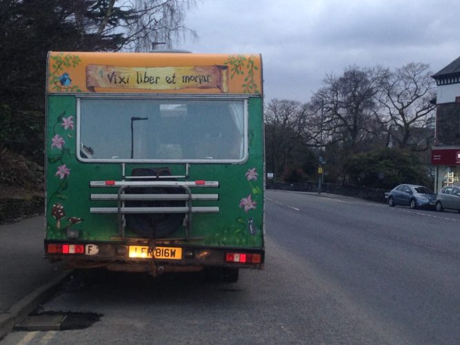 When Mark went to the camper van to start carpet-related activities he came back looking bleak. We had forgotten to turn off the thing that converts battery power into the sort of power that you can use in a hairdryer, and all the batteries had gone flat.