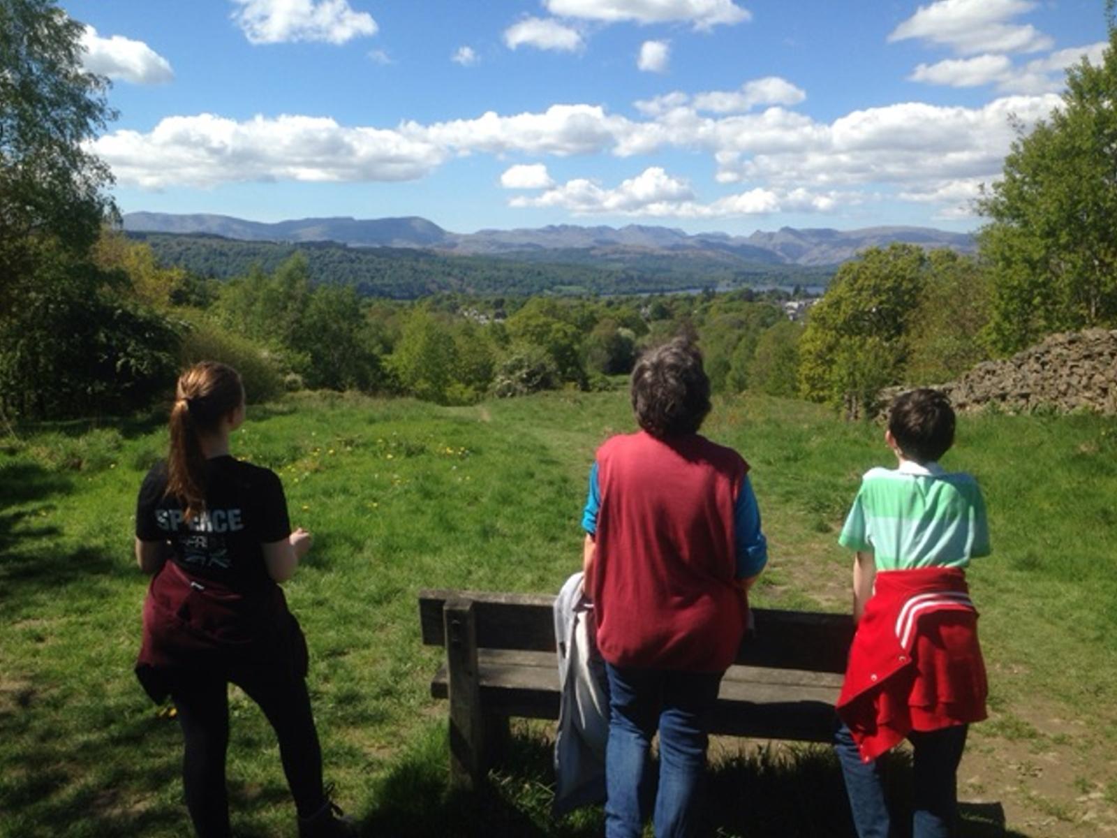 We stood at the top and looked out across the valleys to the sea, glittering in the distance. Oliver, who is doing geography as part of his Common Entrance, told us about erosion and weathering, and Mark pointed out the log stack, tidily sheeted up in our field far below.