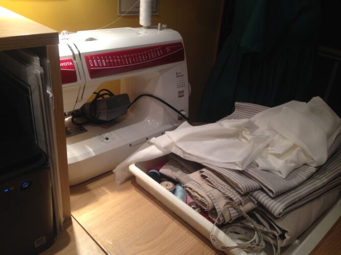 After that I did some sewing. Of course she is going to need an apron. She does not believe this but she will. Of course she will probably not be making things like candles and soap, and she might not even do much baking, but she will need one all the same. You cannot cook splashy things like curry, or spitty things like bacon, in a smart police uniform unless you have an apron.