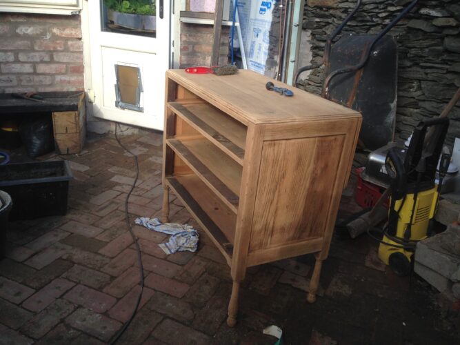 Underneath the flaking bashed varnish and the ancient black woodstain was the most beautiful piece of honey-coloured furniture. I could hardly believe that I have owned it for all of these years and not looked at it.