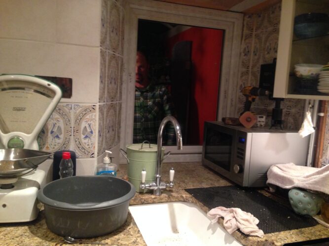 Downstairs Mark is clattering and banging and making dust.
