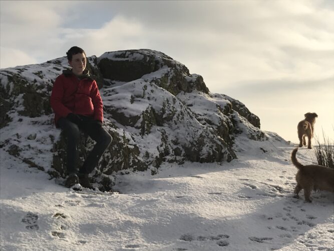 It has been grey, and filled with wet drizzle, and the cold has shivered just around freezing. The dogs and I had a dreary sort of walk this morning, splashing through the recently-melted puddles over the still-frozen mud. The dogs would not run after the tennis ball that I threw, and I had to fetch it myself, and after a little while Roger Poopy’s father stopped going for a walk and trudged back to stand by the park gate, shivering miserably, until I agreed that we could go home.