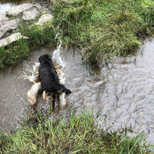 We did not go straight out. First I had to do all of the other things that I should have done and had forgotten, like hanging the washing out. The Weather Gods waited until I was at the very top of the fell before it rained, presumably for the entertainment value of watching me scurry hastily back, bawling at the dogs and sloshing through puddles.